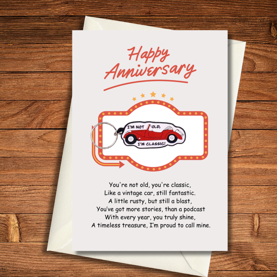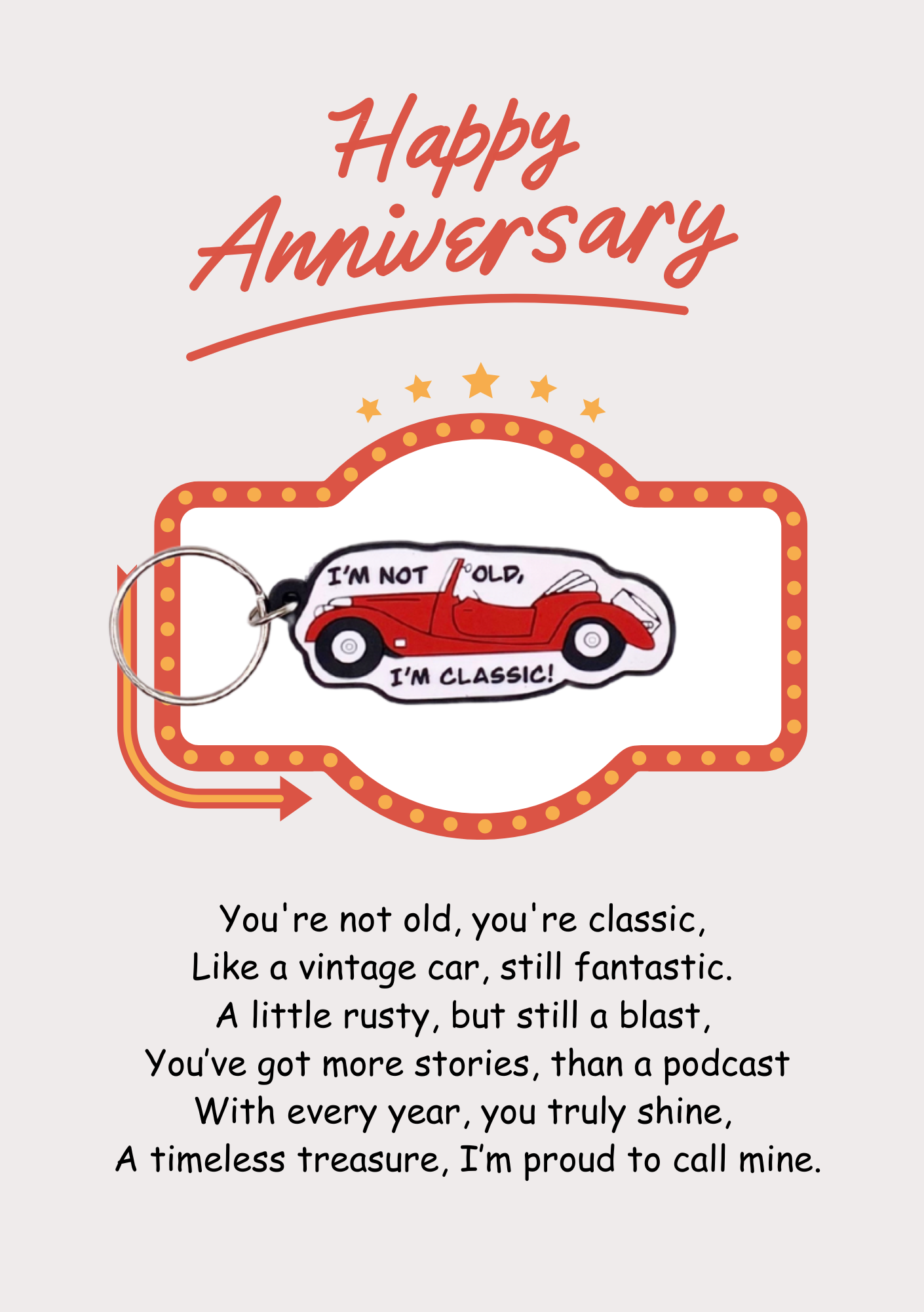 Anniversary card with classic car Keyring gift