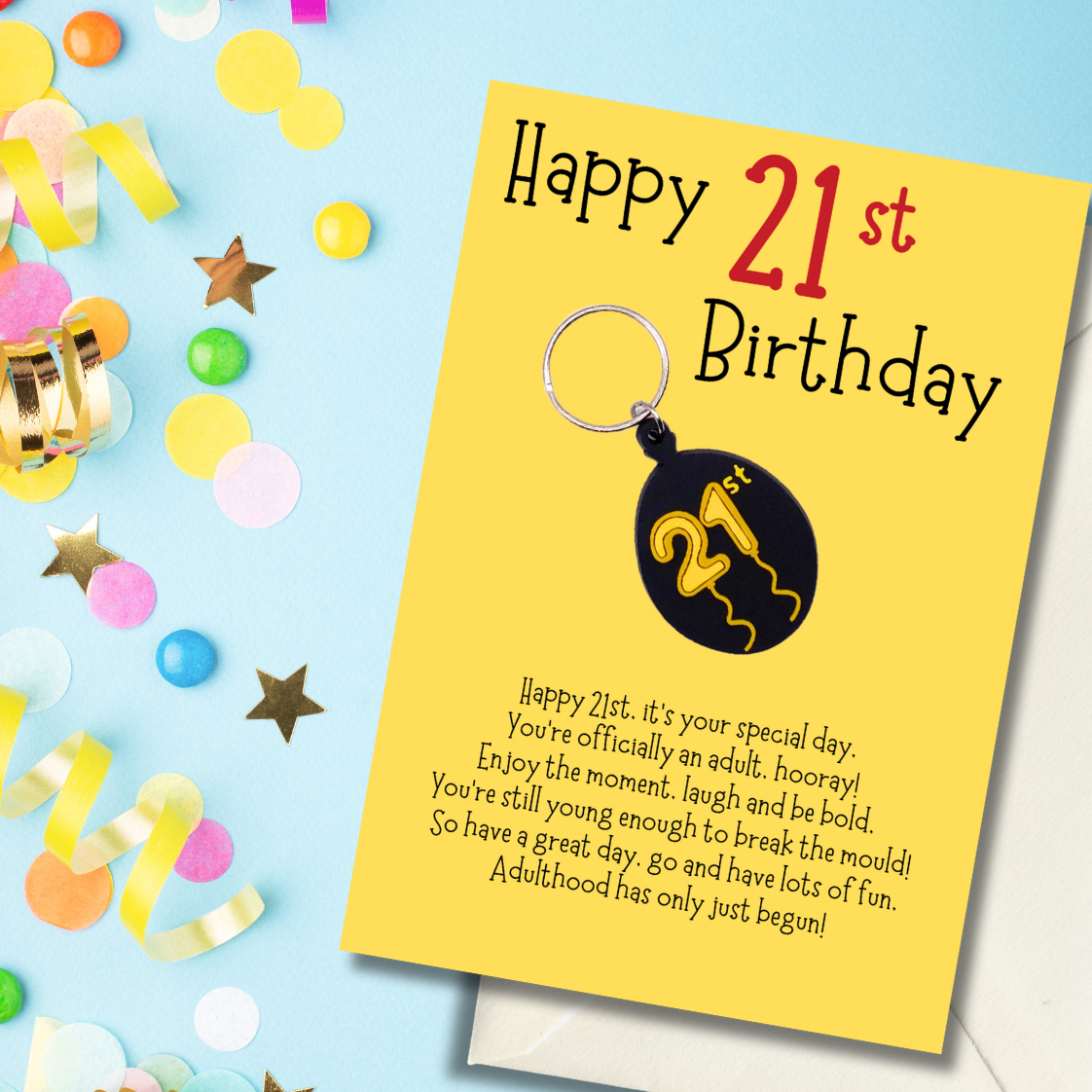 21st Birthday with 21st balloon Keyring gift