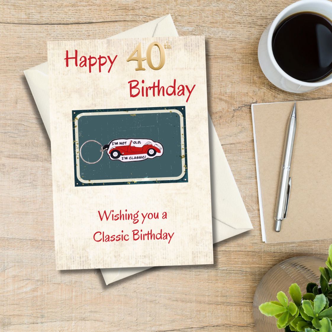 40th Birthday card with classic car Keyring gift