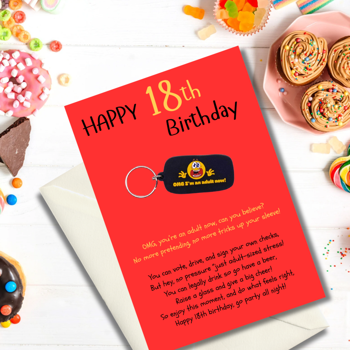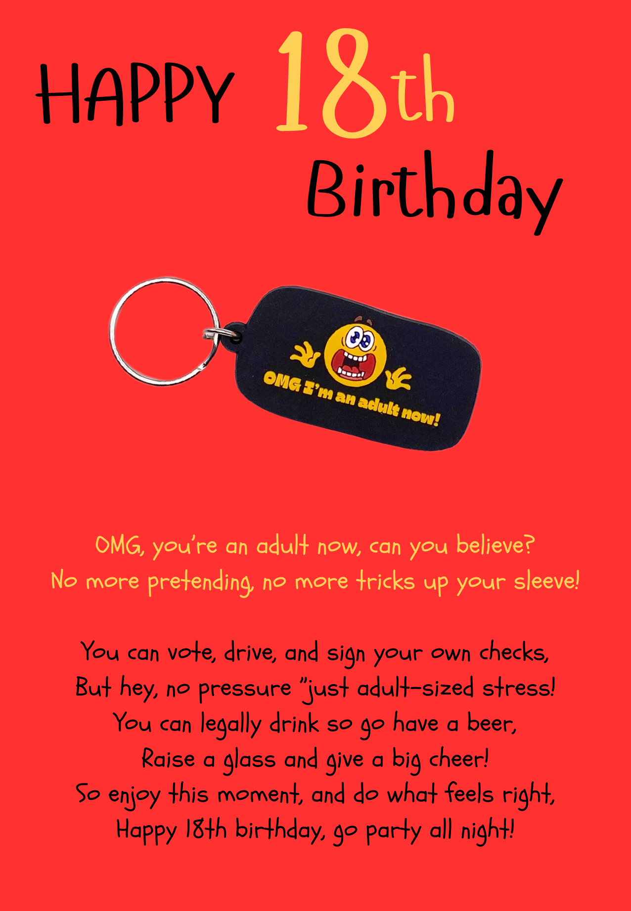 18th Birthday card with OMG Keyring gift